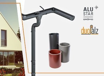 Grömo Alustar TX sistem odvodnjavanja streh za različne uporabe in z veliko barvno izbiro. Izdelke iz aluminija Alustar TX odlikujejo nekorozivnost, lahko oblikovanje in manj kot polovična teža pri enaki trdnosti z drugimi materiali.