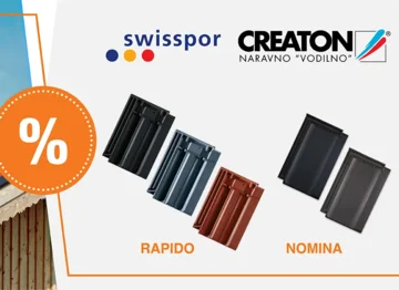 Opečni strešniki Creaton Rapido in Nomina nudita optimalno razmerje med kvaliteto in ceno. Za vas smo pripravili posebno akcijo na osnovne strešnike in opečne dodatke:
